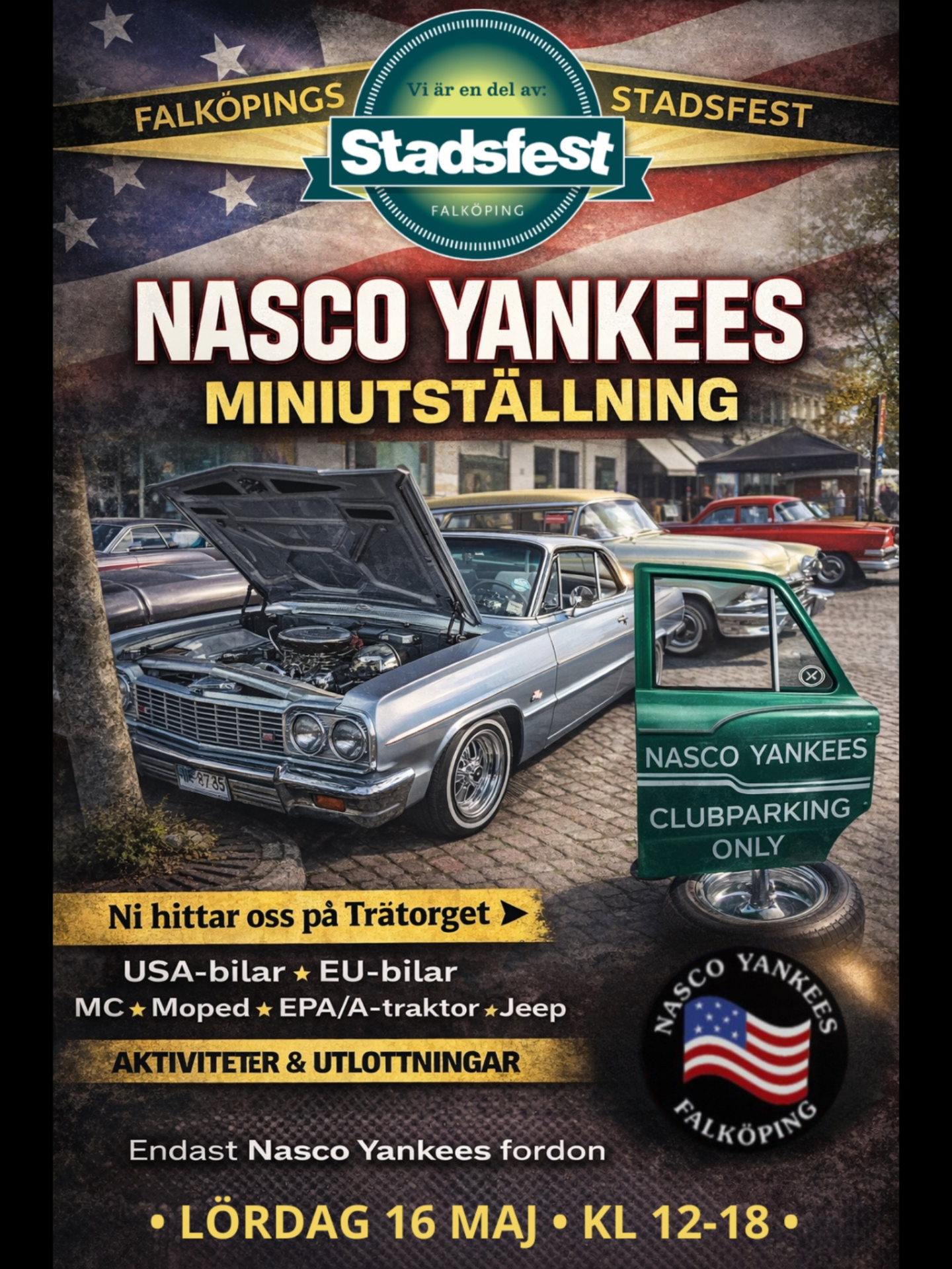 I samband med STADSFESTEN 16/5 kör vi en miniutställning utav USA-bilar, EU, MC, Moped, Jeepar